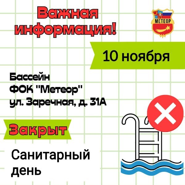 10 ноября - санитарный день в ФОК "Метеор" на ул. Заречной