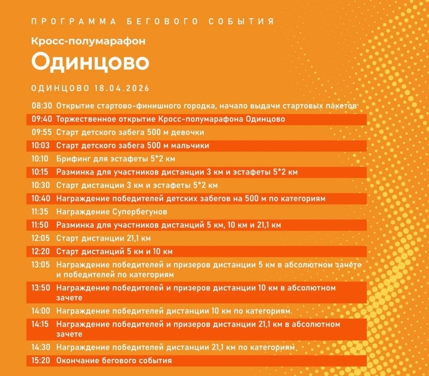 Регистрация на забег доступна на сайте: https://reg.russiarunning.com/event/Odintsovo2026.