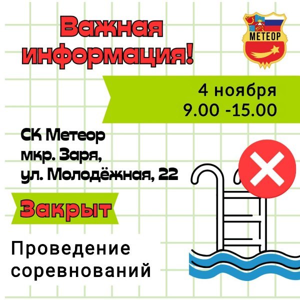 4 ноября - изменения в режиме работы СК "Метеор" (мкр. Заря)