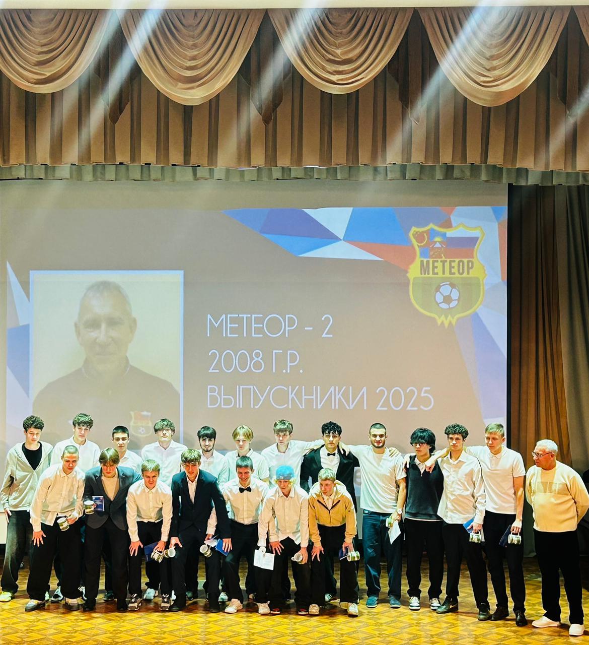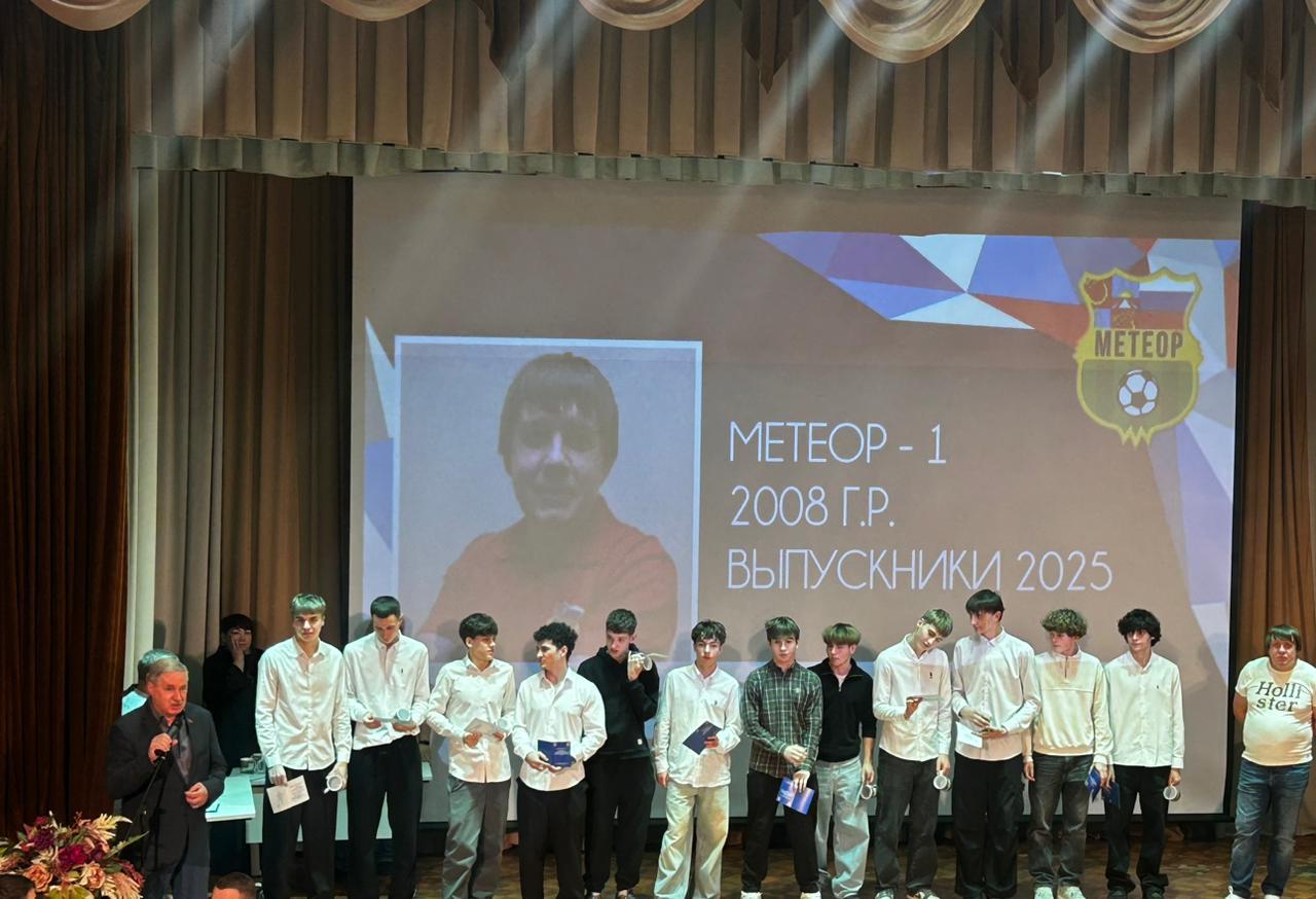 Особое внимание было обращено на выпускников отделения, тех самых, кто поступив в возрасте 6-7 лет, остались в Футбольной семье СШОР "Метеор" на долгие-долгие годы, пройдя сложный путь из побед, ничьих и поражений и отдав этому прекрасному спорту больше половины жизни. Все они получили свидетельства об окончании спортивной подготовки по программе "Футбол" Спортивной школы олимпийского резерва "Метеор" и памятные подарки.