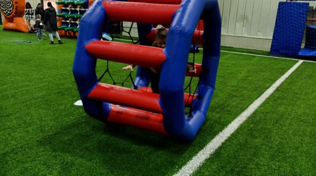 - зоны активности для спортсменов и детей. Помимо матчей и тренировки, гости праздника участвовали в увлекательных спортивных играх на аттракционах, расположенных в крытых манежах: