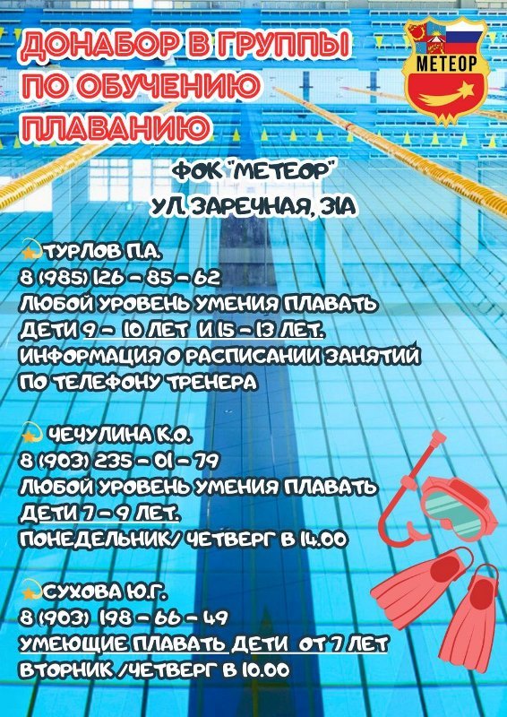 Напоминаем, что в ФОК "Метеор" доступно СВОБОДНОЕ ПЛАВАНИЕ.