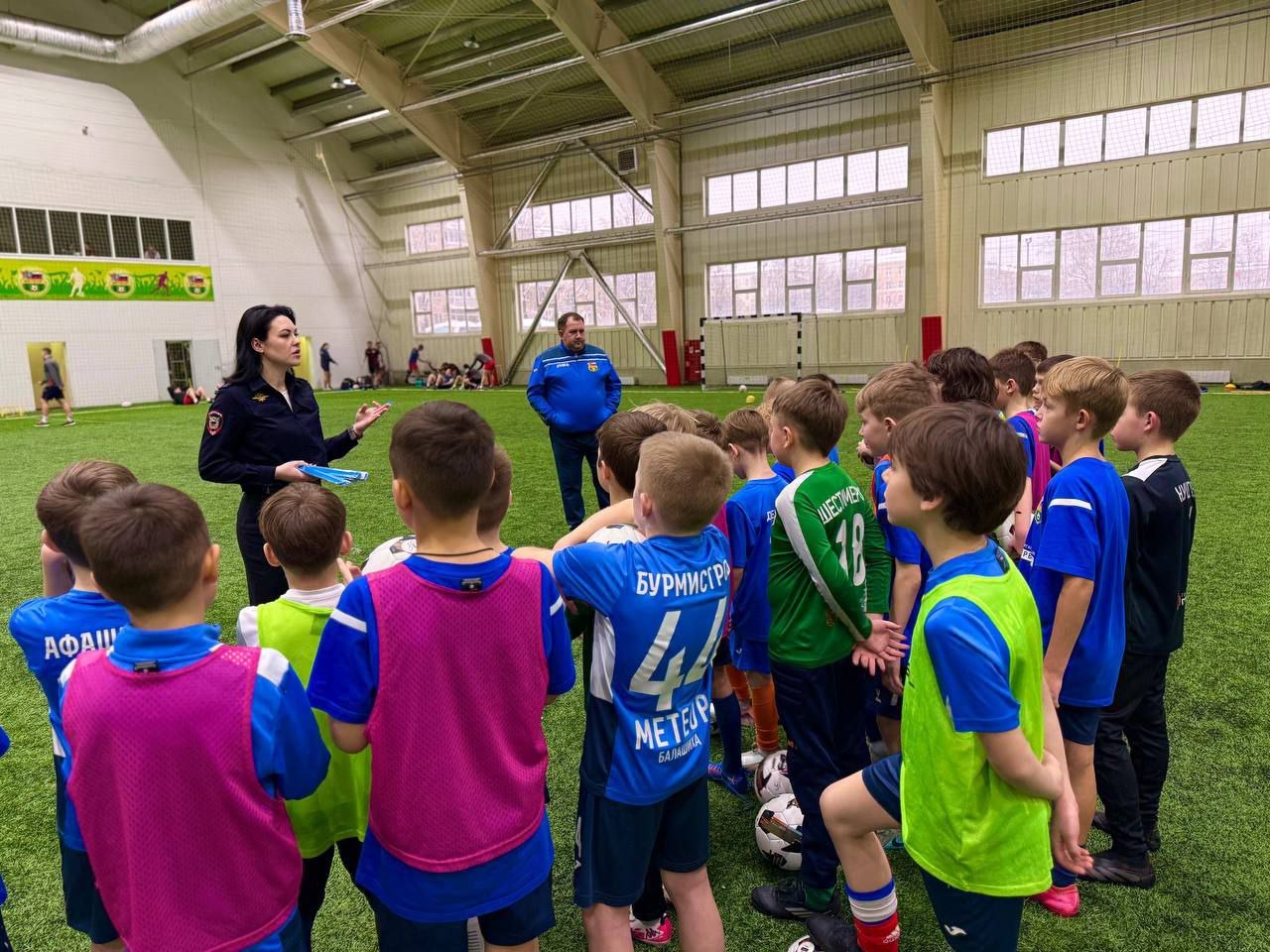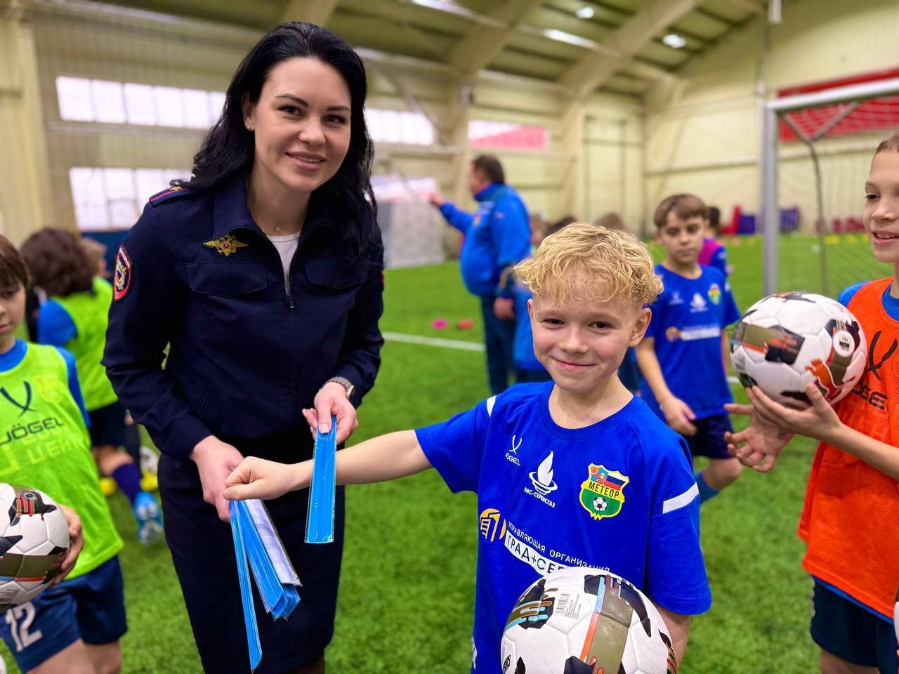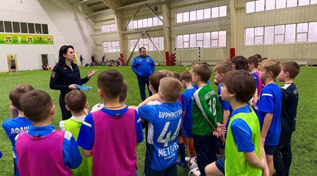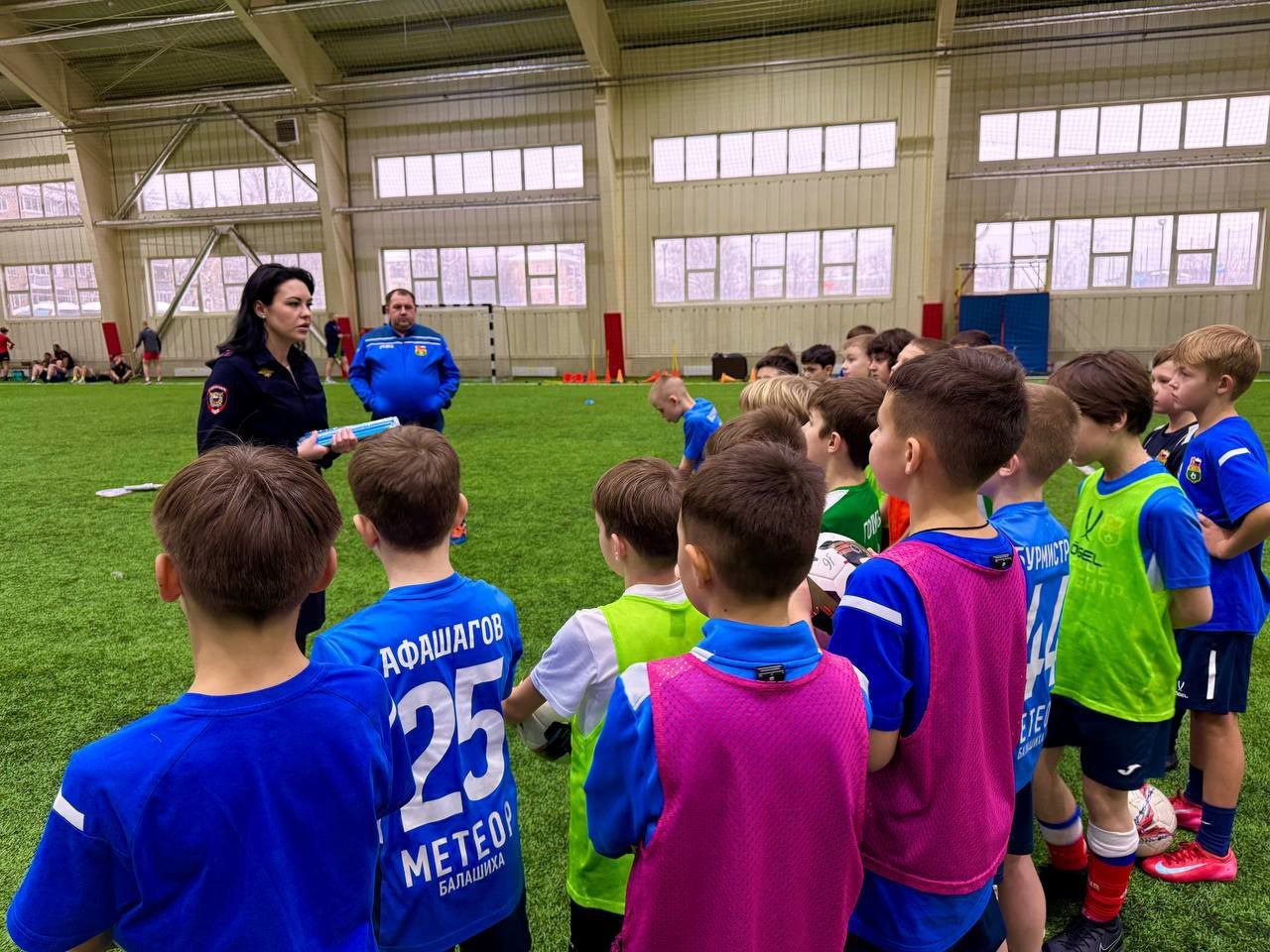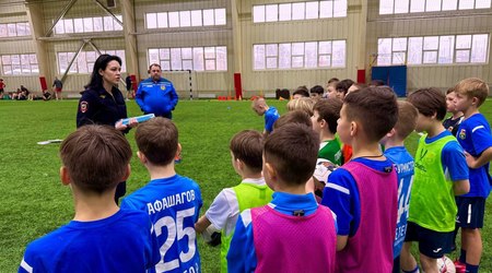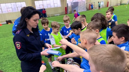 Сегодня в футбольном центре "Метеор" прошла встреча сотрудников ГИБДД с воспитанниками отделения футбола 2016 года рождения