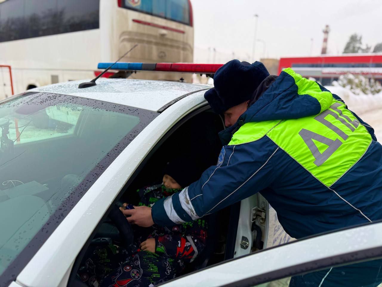 Юные воспитанники узнали о правилах дорожного движения, познакомились с инструктором, осмотрели полицейский автомобиль и получили памятные подарки.